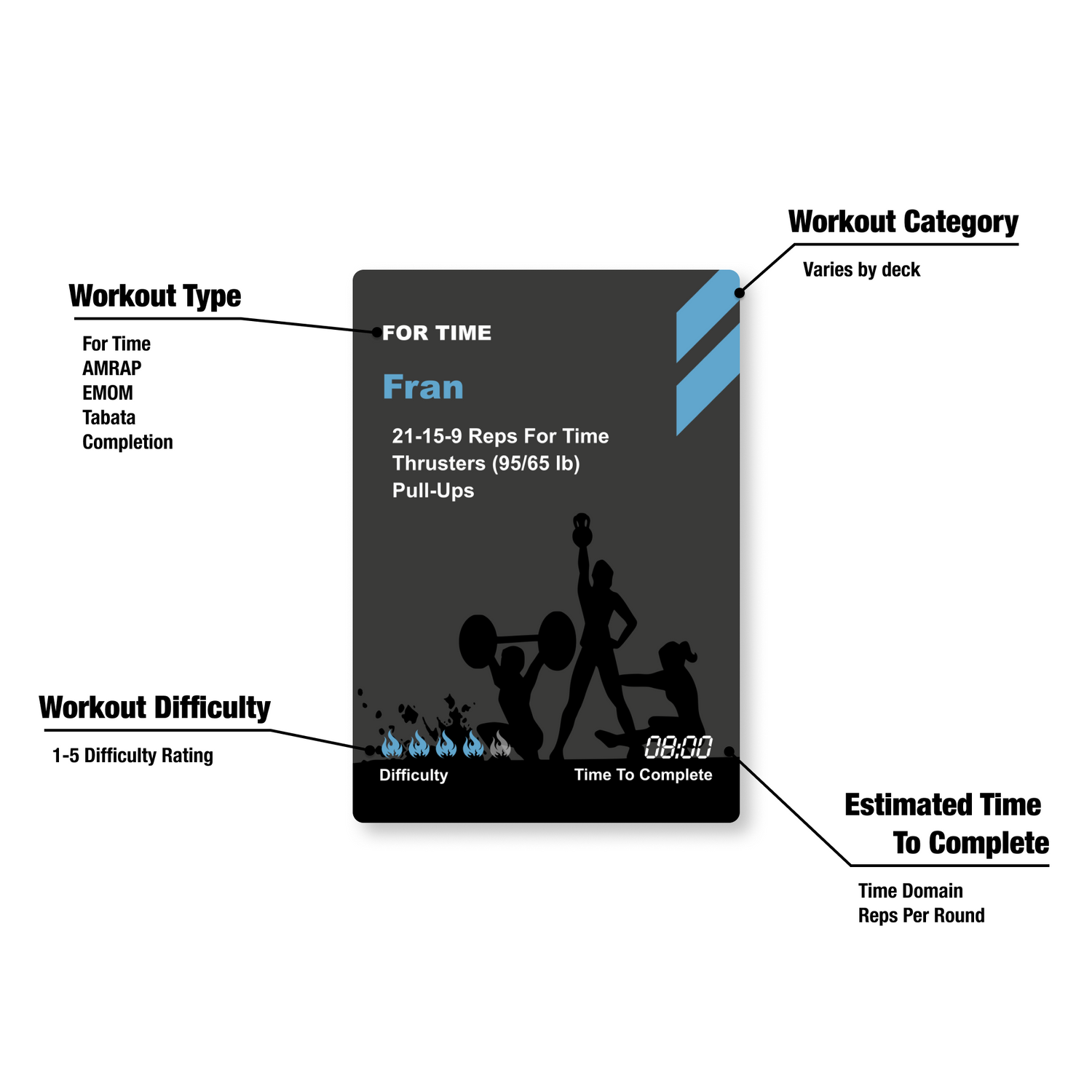 *The card displayed is an example from the Travel Deck. Workouts and workout styles will vary per deck